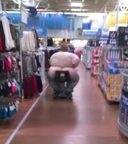 They see me rollin' they hatin' at Walmart. That must be the biggest butt crack ever. It's like the loch ness photo. It's grainy so we don't know if it's real.