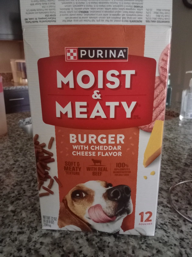 This dog food is garbage. Purina Moist and meaty bullshit dog food has my dog wanting to drink more water than usual. These small packages ain't enough for a larger size dog. 1/5 rating. 👎