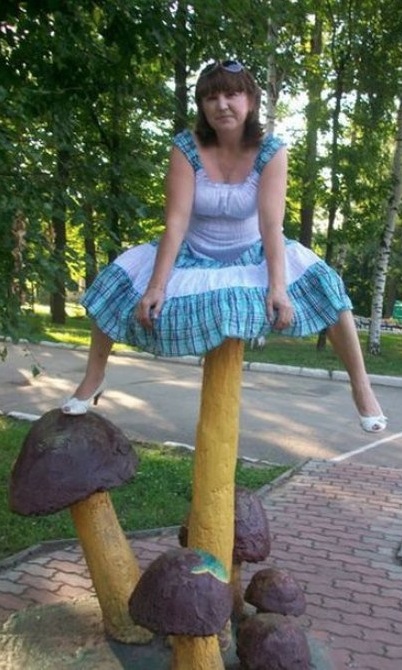 You can see this girl really likes sitting where she is sitting. Look mom no hands! She's an expert at taking the whole mushroom