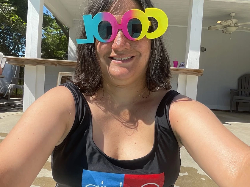this is me hanging out by the pool at the beach house in outer banks in North Carolina 2025