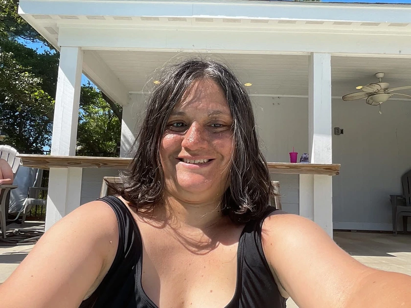 this is me hanging out by the pool in the beach house in the outer banks in North Carolina 2025