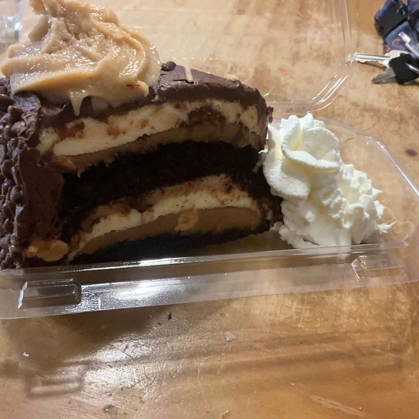 this is my dessert I got from the Cheesecake Factory Reese peanut butter cup cheesecake