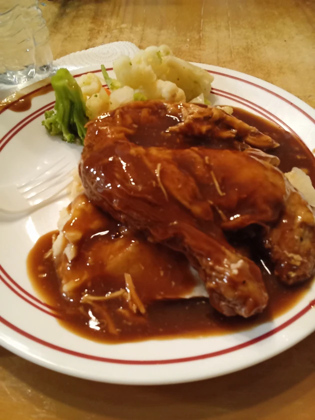 this is my dinner tonight chicken and mashed potatoes and vegetables