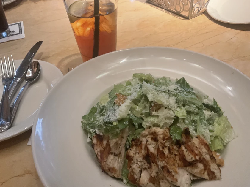 this is my dinner tonight I had at Cheesecake Factory chicken ceaser salad and unsweetened ice tea