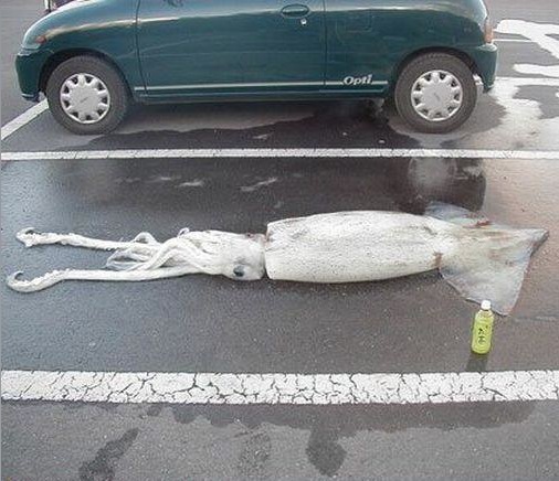 Ok first question. Why is a squid in a parking lot? Second question why is a giant squid in the parking lot? I think I'm going to need an explanation.