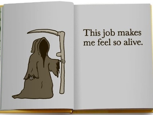 Interesting perspective from the Grim Reaper. It is good to love your job. It's even better when your job makes you feel so alive.