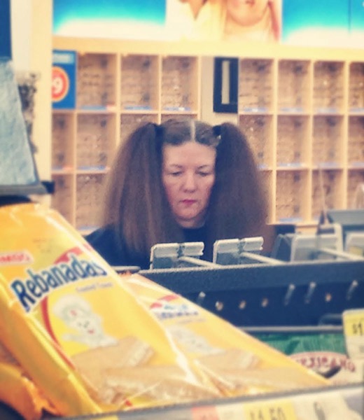 Ok she really knows how to fix up that hair doesn't she? I think she might be trying to take her style back a few decades. Looks like she's parting a giant sea.