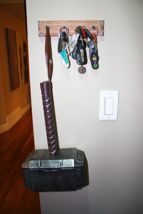 Just hanging up my keys right next to a sledgehammer from Thor. I guess my superhero god of thunder is home now too.