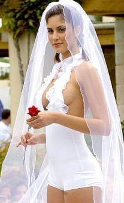 Tight fitting revealing jumpsuit kind of dress that says, “I’m more about the honeymoon than anything else."