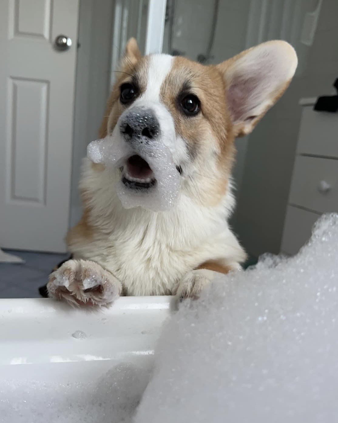 My dog loves a good bubble bath especially with lots of soap bubbles