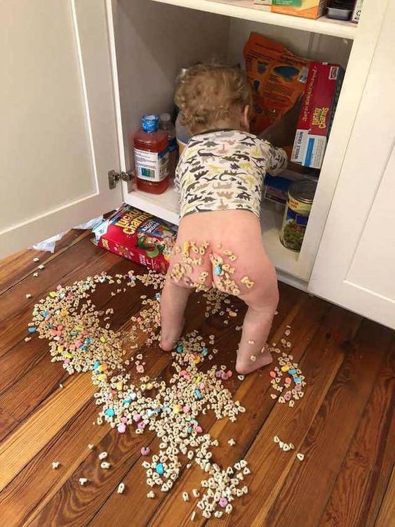 Time to make breakfast. I'll just help myself to the whole box of Lucky Charms.