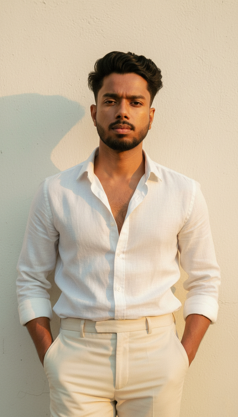 🤍 Timeless White Shirt Look Simple, classy & always in style — the most versatile outfit every man needs ✨ Perfect for college, dates, office, parties… bas style everywhere 😎 #anantmadak #faxo #stylewithanant