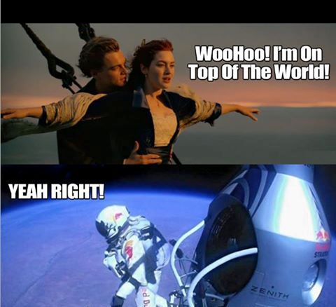 Remember the I am the king of the world from Titanic. Well we all know that at that time people wouldn't have imagined travelling to space. I don't think they even knew then what space was. Poor Kate, if she knew she would never have shouted this. She should have known better than to go off with a poor guy like Leo in the movie. FAIL!!!