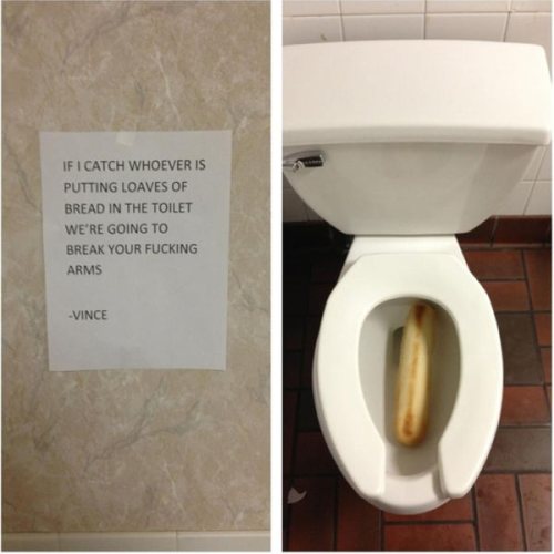 Why anyone would put loaves in a toilet is an extremely confusing situation!