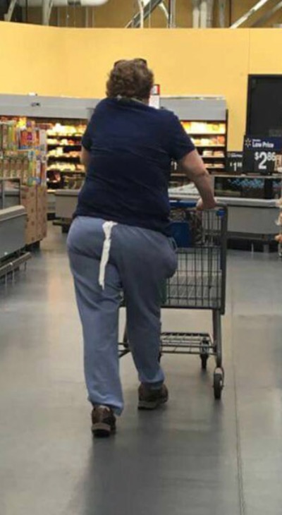 It looks like she's the person that walks around dispensing toilet paper. Walmart customer service can't be beat!