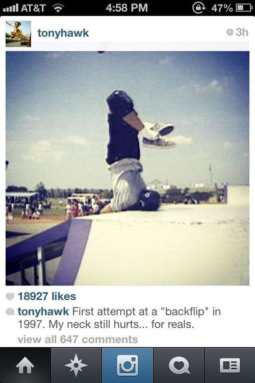 First attempt at a backflip in 1997. My neck still hurts. Good thing he got up from this and went on to be the world's greatest skateboarder!