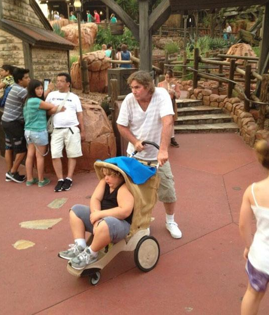 We wint to a zoo last week and we seen this kid that way like 10-12 years old and his father was pushing him in the stroller still wow.