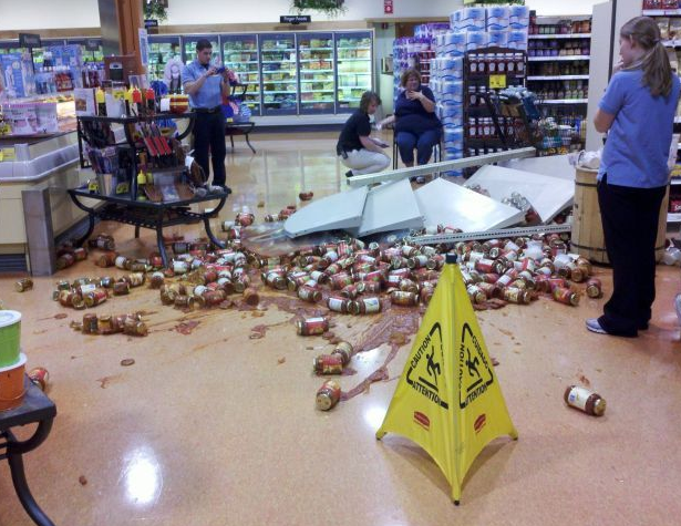 My mom always told me that having too much of good things are alway bad for you and at walmart some worker placed too much of goodies on one shelf and they all collapsed.