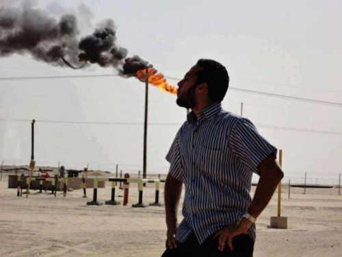 A play with photography. This guy gives us the illusion that he's breathing fire. Damn. I wonder what he had for lunch. Probably a little too much Mexican food. Lay off the chili, bro!
