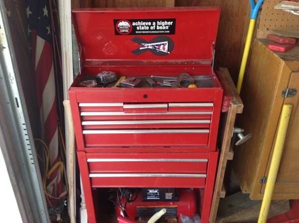 24" wide 10" deep 50" tall red tool box all doors open, no lock I lost the keys. Good shape for a tool box. Asking 50 obo Email or call bob 720.938.9476