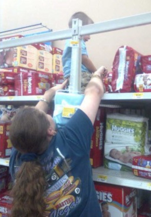 Just bring your kid to Walmart and put him on the top shelf and Walmart will do the rest. Later on you can pickup your kid and get some diapers.