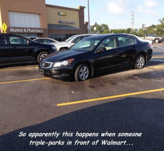 I wouldn't suggest triple parking at Walmart. You might wind up with somebody slashing your tires. The good thing is you can get some new ones at the lowest price.