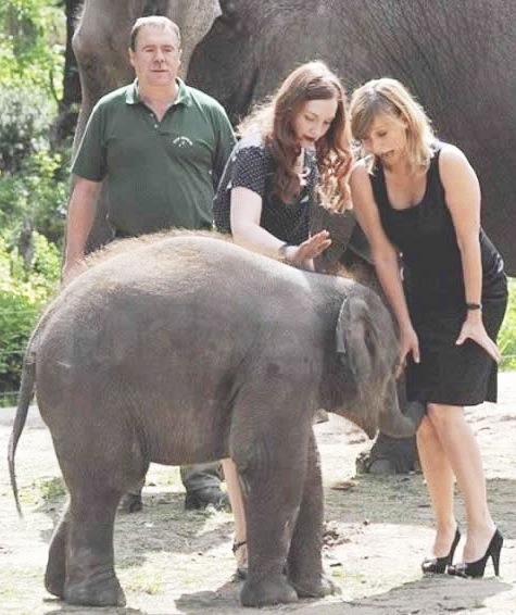 Trunk Touching - Cute Little Curious Elephant Cops a Feel Up Woman's Dress