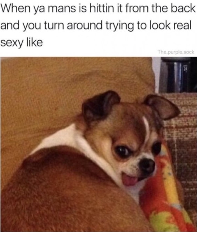 When ya man is hitting it from the back and you turn around and try to look real good.