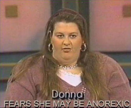 Donna fears she might be anorexic. We're not to sure we agree with donna. It looks like she needs to purchase a mirror or some glasses.