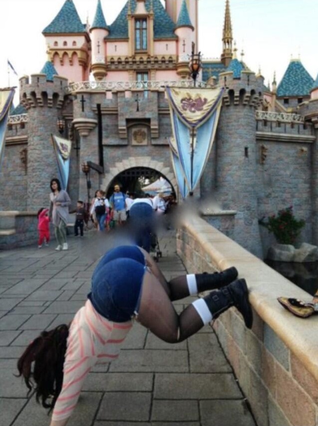 This crazy ho is twerking outside of disney world. What the heck? Take that somewhere else or post an internet selfie. Goofy and Mickey don't want to see that shit!