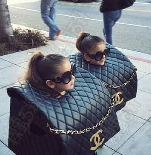 I think these two look rather chic don't you think? I think their purses are rather oversized along with their egos. Either they are trick or treating or just making a fashion statement