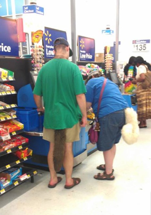 Ok why do these people have big bushy fox tails? Are they dressed for some type of party or are they just dressing up as normal?