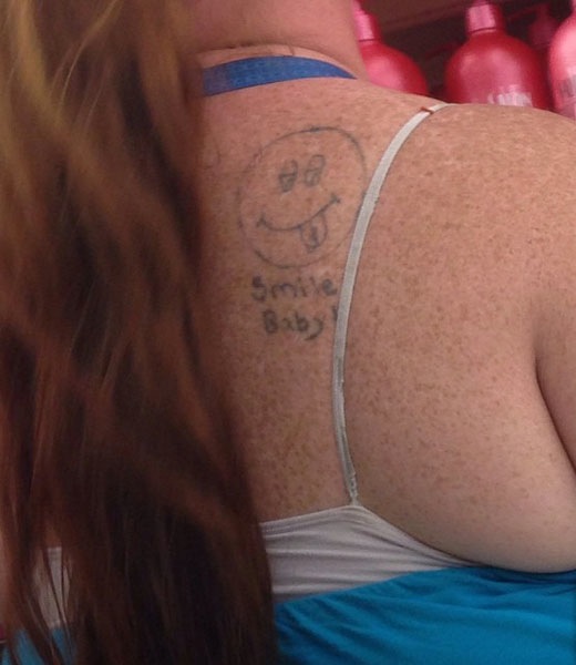 Looks like a baby did the artwork for this tattoo. I think she could have sprung for a little bit more detail and a better design. Probably just shopped for the lowest price...