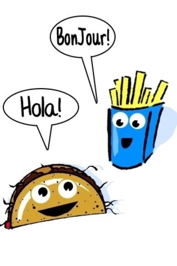 The country of France represented by the French Fries is having a conversation with the country of Mexico represented by the Taco. It's funny how we can associate food with countries now.