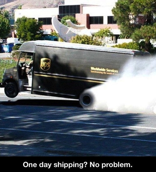 You want an express delivery? No problem. Presenting the new Fast and Furious version of the UPS truck. They'll have your package there in no time.