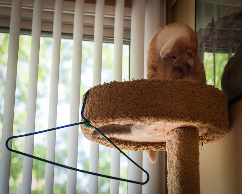 Upside down hanger cat