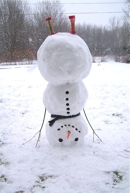 What a unique way to construct a snowman. Make him do a headstand. That's just golden!