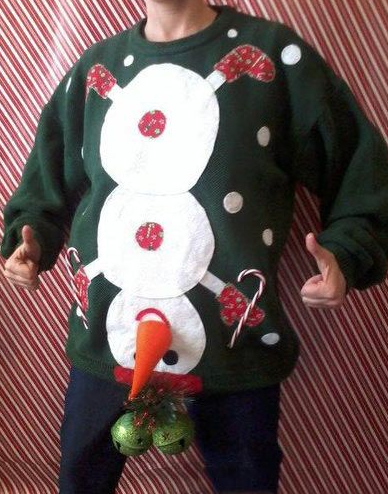 We all remember building that first snowman when the first snow falls but this is an upside down snowman on a ugly christmas sweater