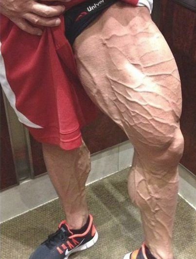 His skin looks like it's exploding with blood. Any more veins and he'll have to be rushed to the hospital when it all explodes. Steroid storm!