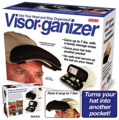 Now you can organize your stuff and put it on top of your head. What a handy gadget. I think I'll pack clothes for my next trip in my hat.