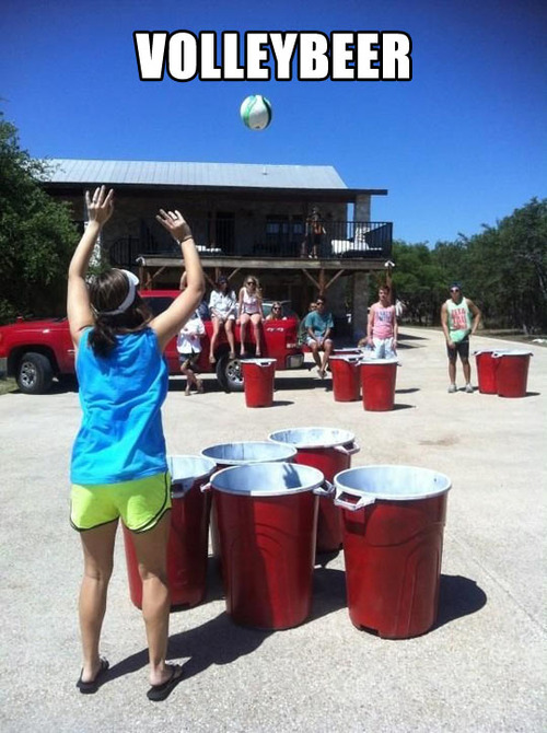 Beer Pong is such a thing of the past. This is the all new craze. Volleybeer. Try playing this game with your friends next time you hit the beach.