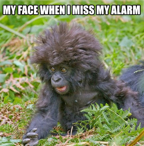 That moment when you wake up and you realize your alarm didn't go off. The monkey's expression is absolutely priceless.
