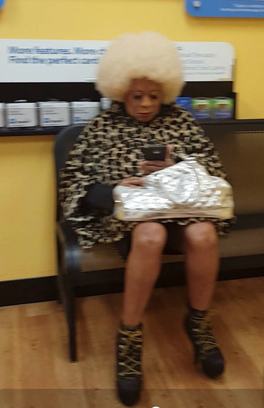 This looks like a throwback from the seventies. I can just imagine the disco ball hovering over her head! Either this is a fashion fail or she's a fashion designer.