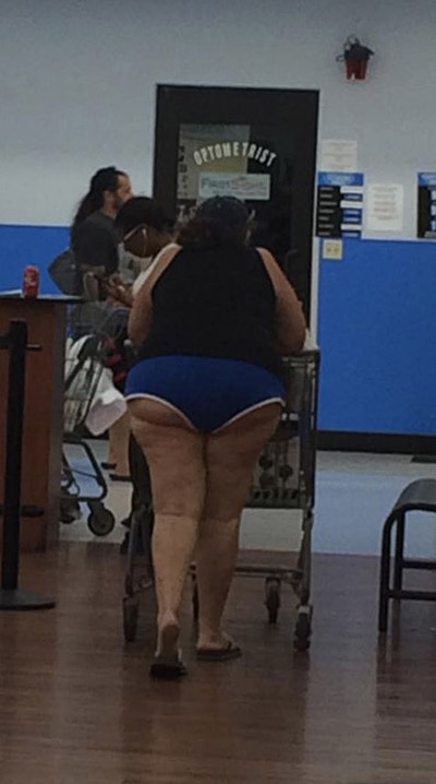 It looks like some people of walmart need better eyesight to check themselves in the mirror before going out. Those shorts are just a little but too short.
