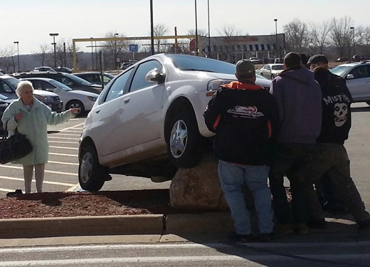 How did she practically go airborne on that rock? Looks like she should give up driving for a while and stick to walking. My god.