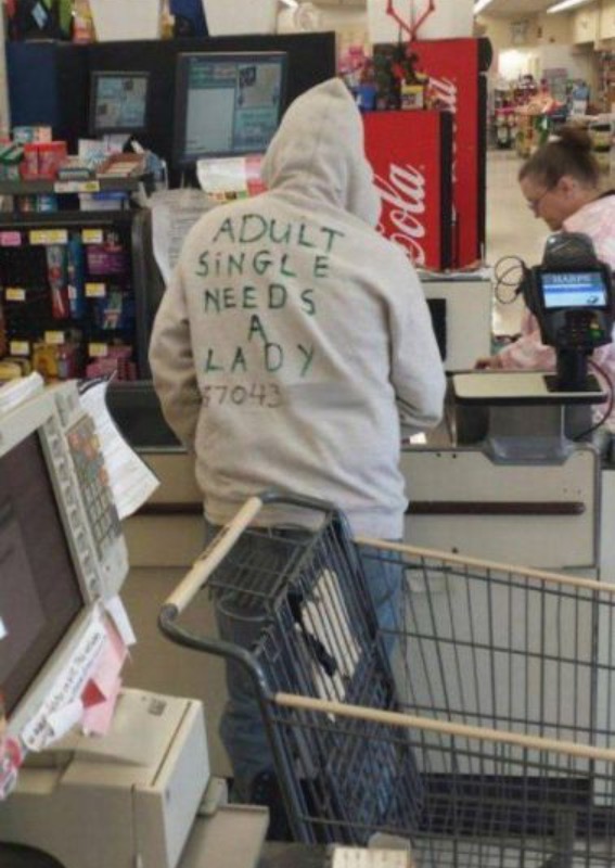 Forget Tinder. There is a new app in town and it's called a sweatshirt. Just right your profile on the back on hopefully your soulmate will swipe right.