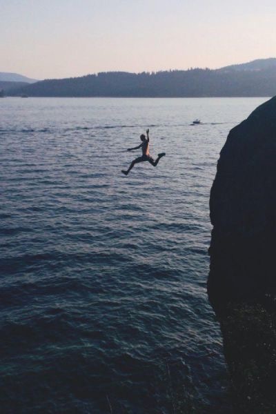 This looks like cliff diving only you're not diving your walking off the cliff and probably ripping your undersides out when you land. Ouch!