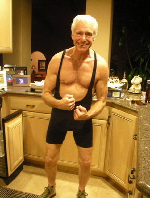 Even at the old age this guy is trying to impress the ladies with his looks.