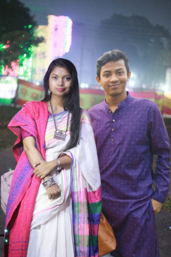we are husband and wife.. enjoying on a Ceremony in Evening > How we look? (please comment)