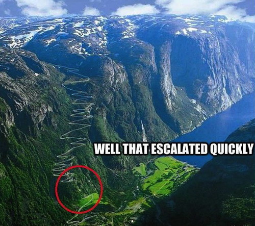 There seems to be a little clink in the plan to conquer this winding road. What kind of vehicle can ascend that height so rapidly and radically?